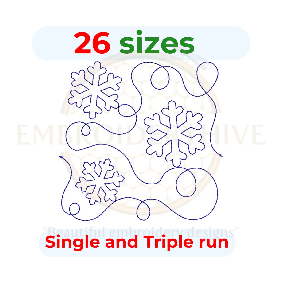 You will receive quilt block embroidery designs in two styles: single-run stitch and triple (bean) stitch. These designs come in square sizes for a perfect fit.