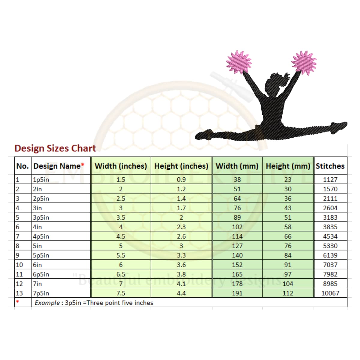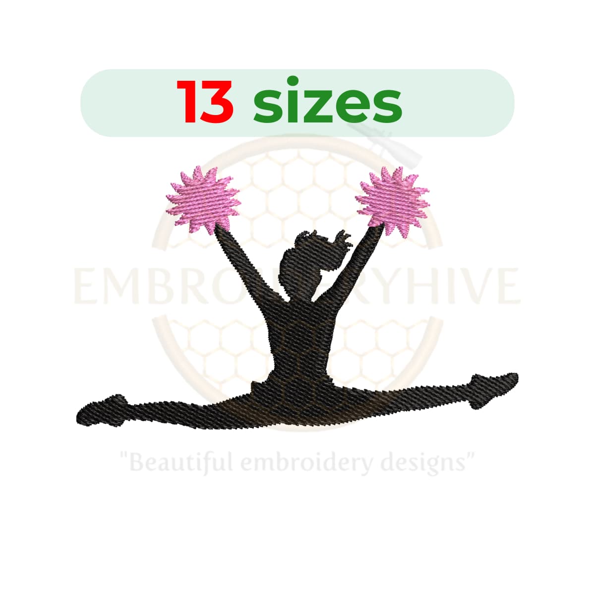 Cheerleader embroidery design, 1.5–7.5 inches. Instant machine embroidery download.
