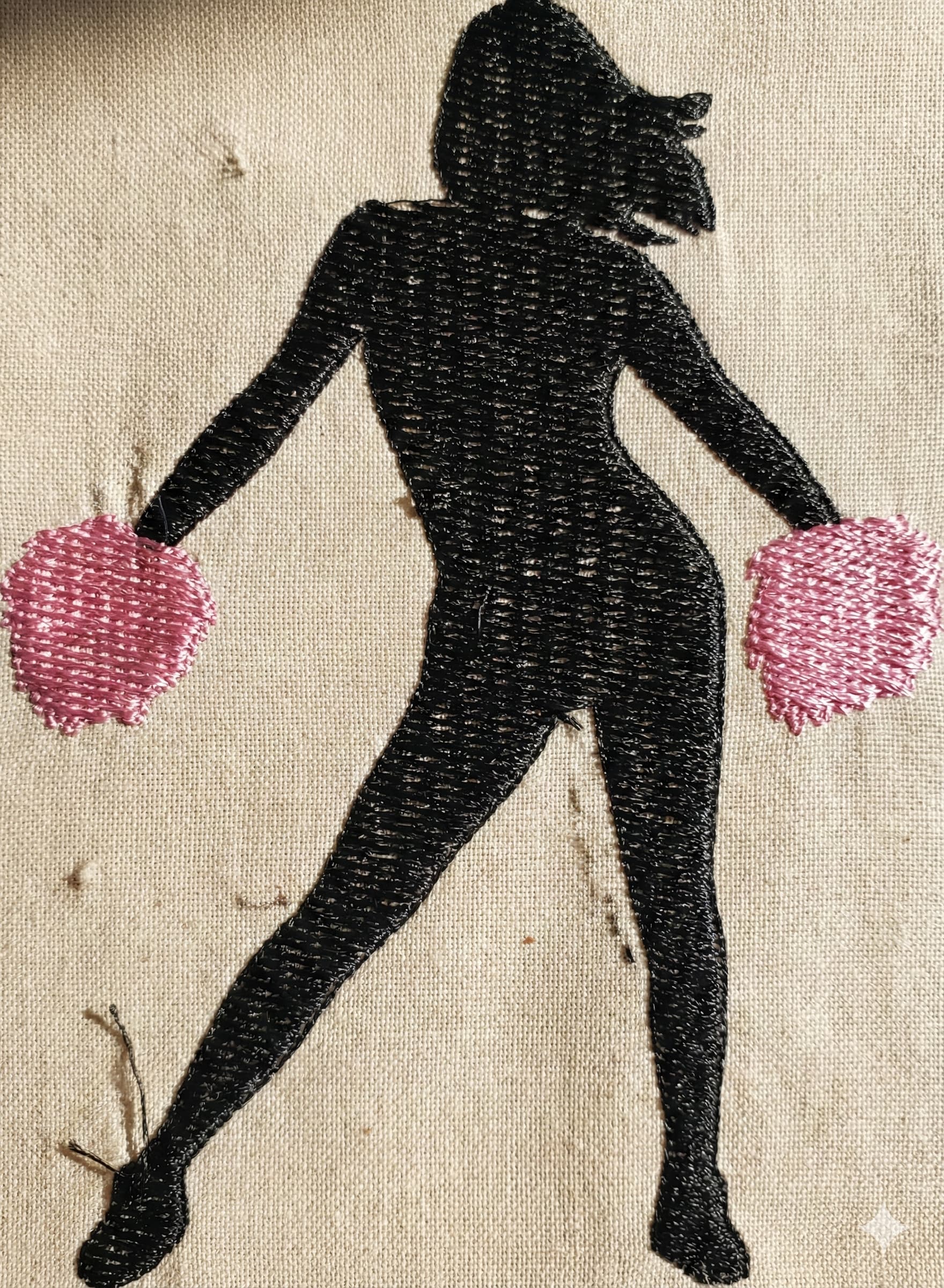 Cheerleader silhouette embroidery design in filled stitch, available in 13 sizes for machine embroidery.